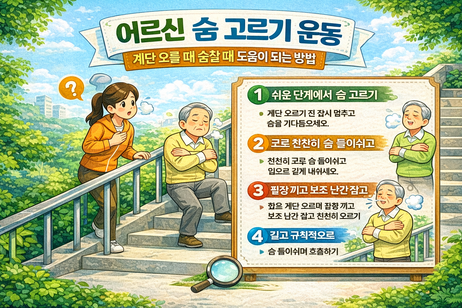 어르신 호흡 관리 · 계단 숨참 완화