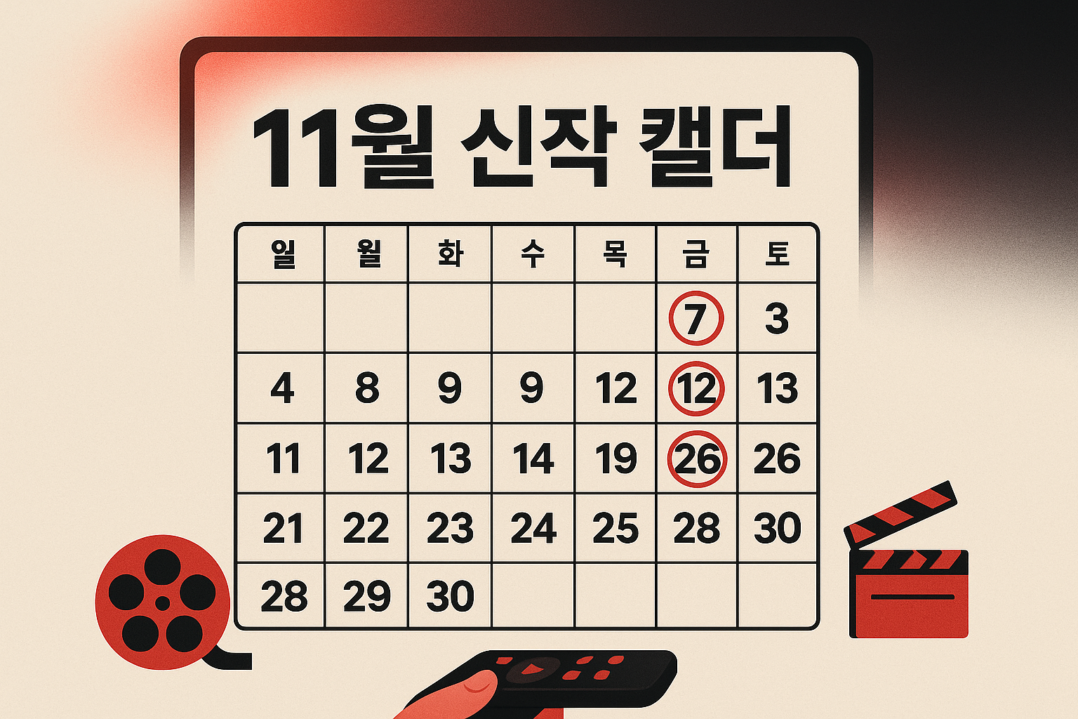 11월은 7·12·26을 중심으로 대작·로맨스·최종장이 균형 있게 배치됩니다. 첫 주 라이선스 → 7일 영화 → 12일 로코 → 26일 초대작 동선으로 시청 계획을 세우면 후회 없습니다.