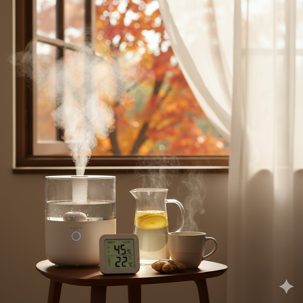 - 실내 적정 습도 유지: 가습기를 사용하거나 젖은 수건을 널어 실내 습도를 40~60%로 유지하세요. 특히 잠자는 동안 호흡기가 건조해지지 않도록 신경 쓰는 것이 중요합니다. 너무 습해도 세균 번식의 원인이 되니 적정 습도를 지키는 것이 핵심입니다.