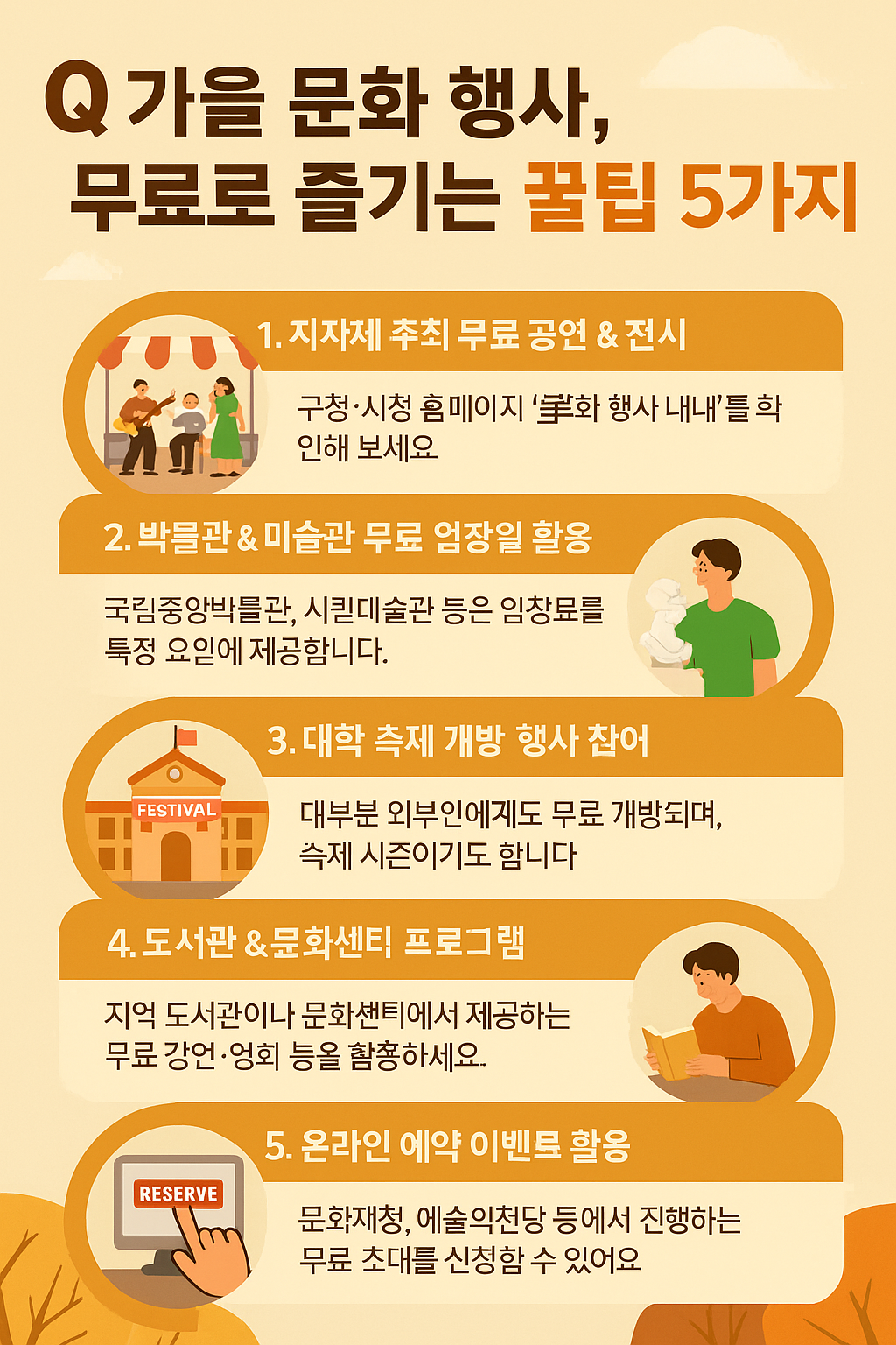 가을 문화 행사, 무료로 즐기는 꿀팁 5가지
