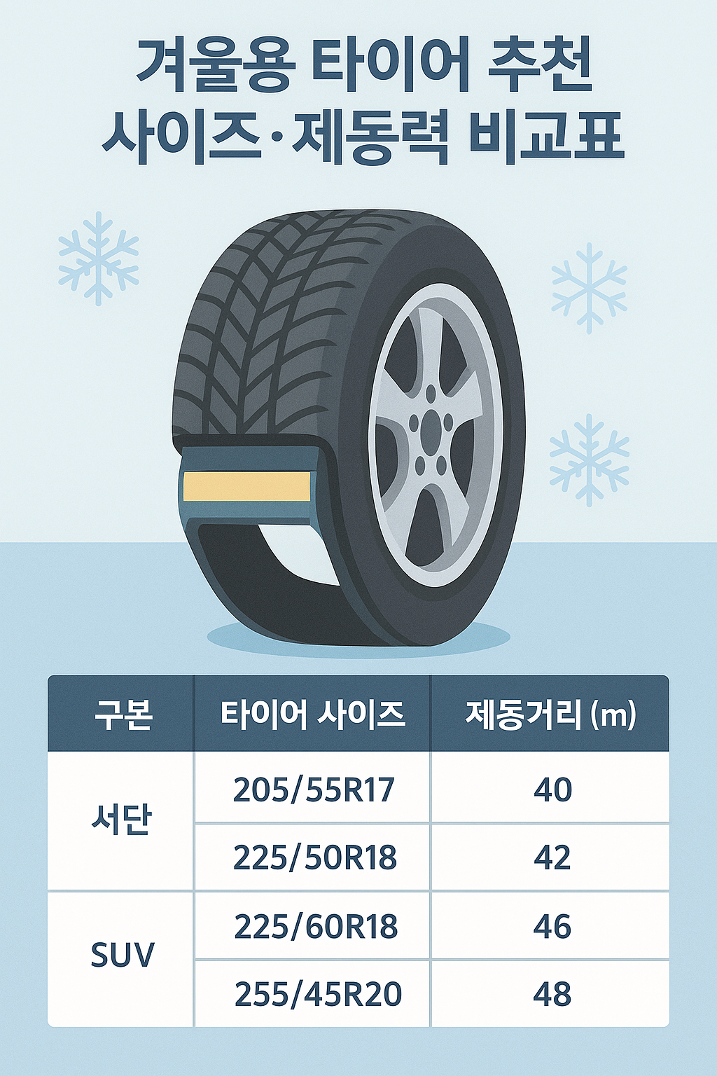 | 195/60R16 (준중형) | 국산 | 금호 WinterCraft WP52 | 약 20~22m | 약 35~37m | 9~10만 원대 |