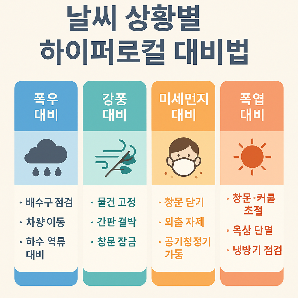 폭우, 강풍, 미세먼지, 폭염 등 날씨 상황에 맞춰 우리 동네 기준으로 대비하는 체크리스트