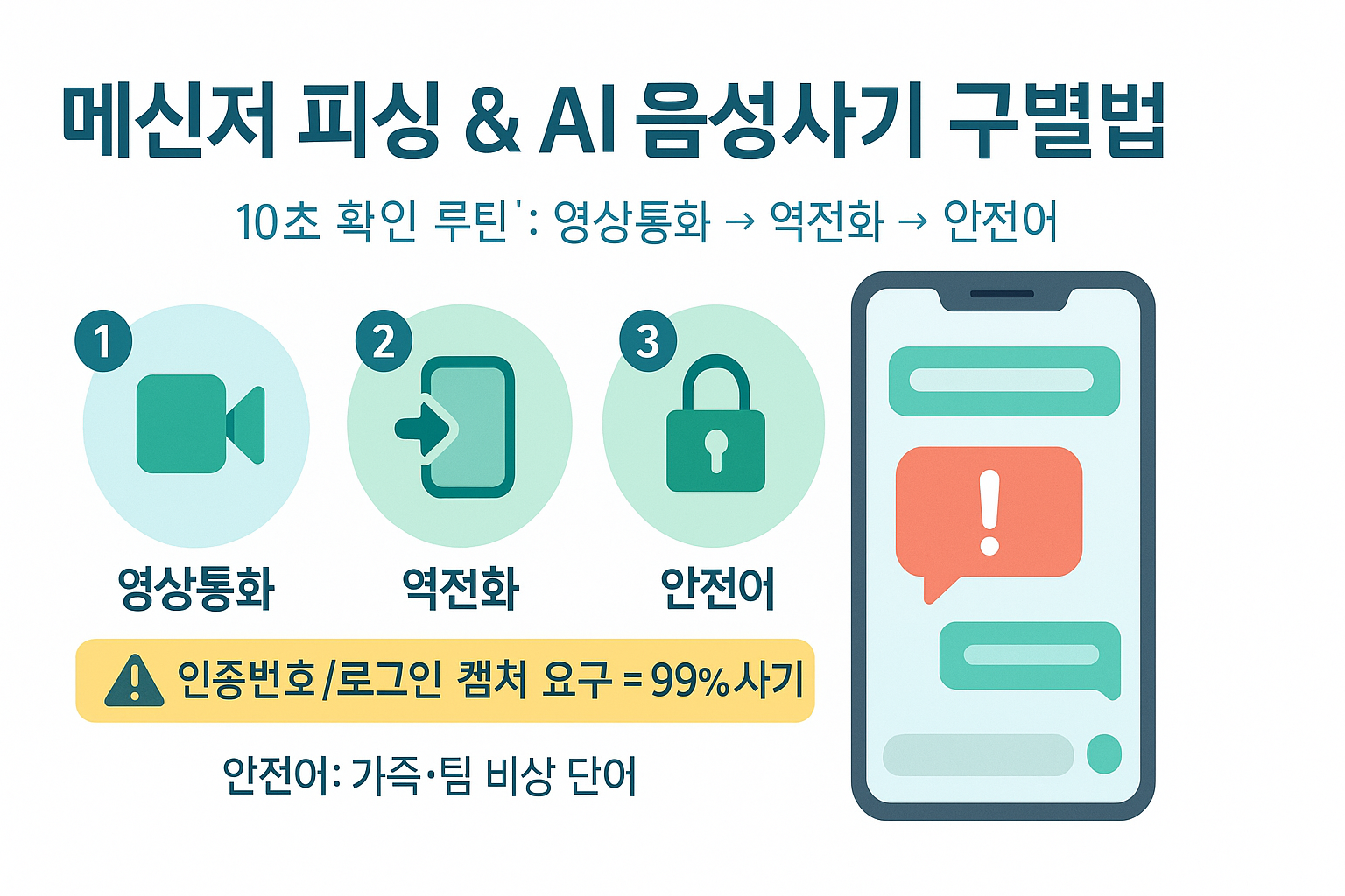 지인 사칭 메시지 + 합성 음성까지 등장! 10초 확인 루틴과 안전어(코드워드)로 막아내고, 만약 당했다면 30분 복구 플랜으로 회복하세요.