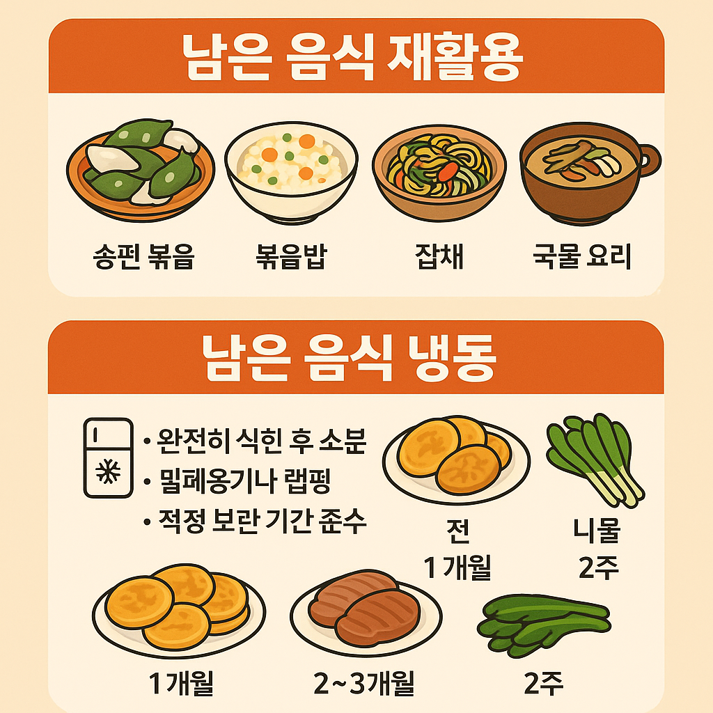 명절 끝나고 ‘냉장고 구조’ – 남은 음식 재활용 레시피·밀키트 추천·냉동보관 가이드 + 김장 전 체크리스트