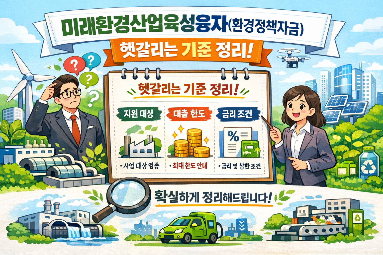 미래환경산업육성융자(환경정책자금)는 숫자만 보면 “무조건 좋다”처럼 보이지만, 실제 현장에서는 ① 지원대상(우리 사업이 환경성과가 있는지), ② 자금용도(설비/공사/장비/운영의 경계), ③ 집행 타이밍(신청 전/후 비용 처리)에서 가장 많이 엇갈립니다.