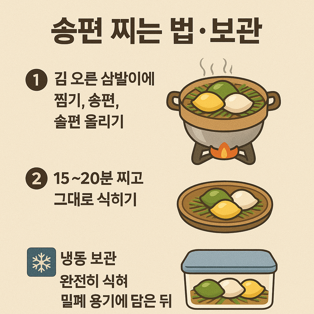 송편 ‘터짐·딱딱함’ 없이 찌는 법 – 반죽·찜·코코넛오일 코팅·냉동보관