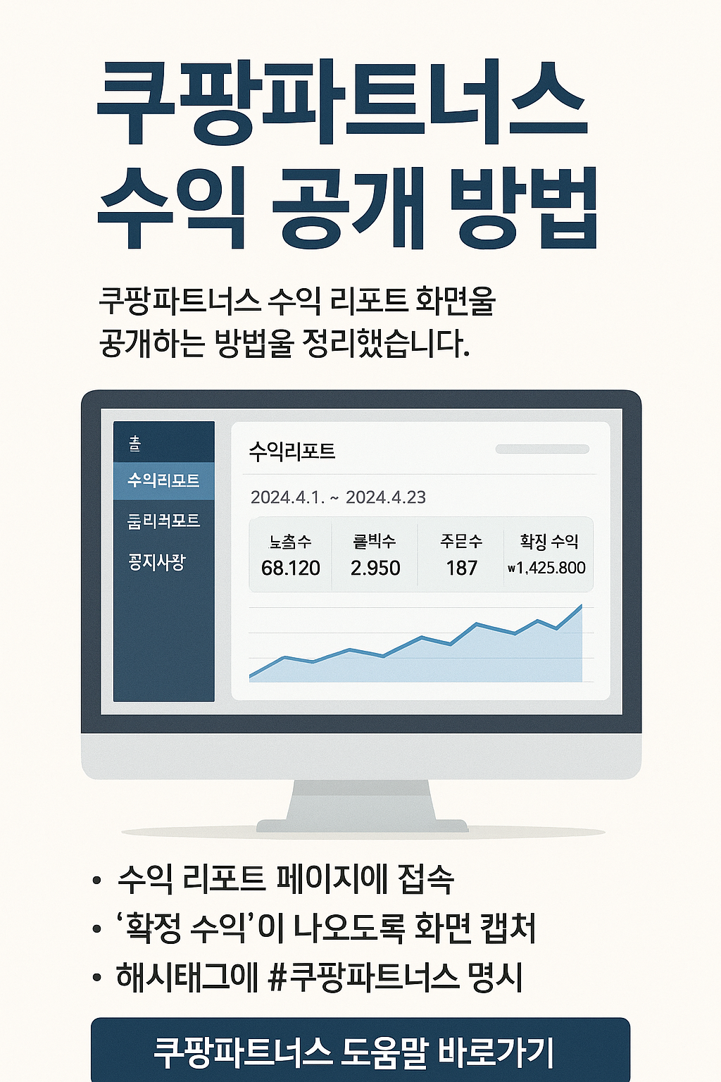 쿠팡파트너스 수익 공개는 정확한 항목 노출과 개인정보 마스킹만 지키면 쉽습니다. 블로그·SNS에서 신뢰를 높이는 표준 공개 포맷과 법적 유의사항을 체크리스트로 정리했습니다.