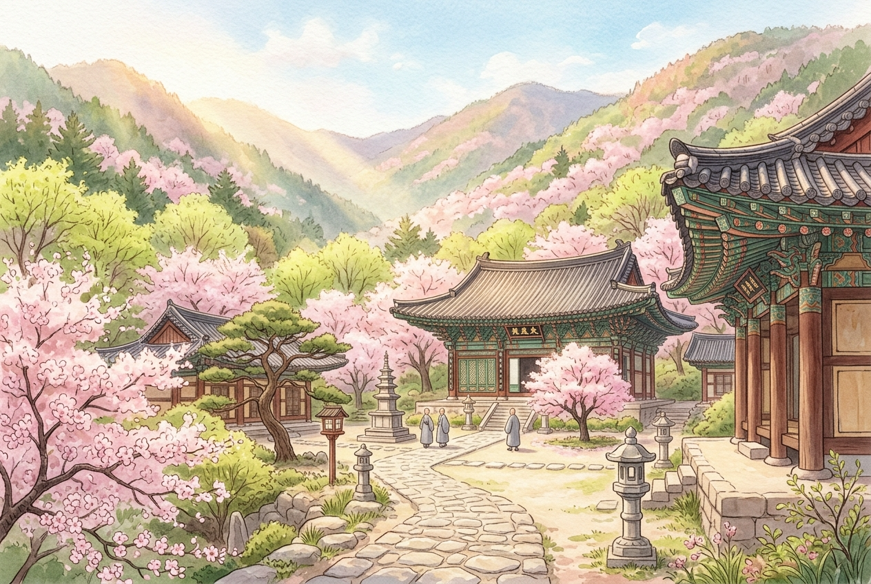 그래서 이번엔 조금 특별한 봄 여행을 제안해 드리려 해요. 인파가 가득한 명소 대신, 깊은 산속에 고요하게 자리 잡은 사찰 여행이에요. 천 년의 시간이 쌓인 전각과 꽃향기가 어우러지는 산사는 도시의 소음에 지친 마음을 부드럽게 감싸주는 그런 곳이거든요. 마치 자연이 직접 우리에게 쉬어가라고 손을 내밀어 주는 것처럼요.